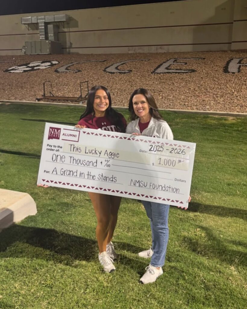 Full-time, main-campus undergraduate students in good standing have a chance to win a $1,000 scholarship just by attending athletic events! In the 2025–2026 academic year, the NMSU Alumni will award a total of nine “Grand in the Stands” scholarships.