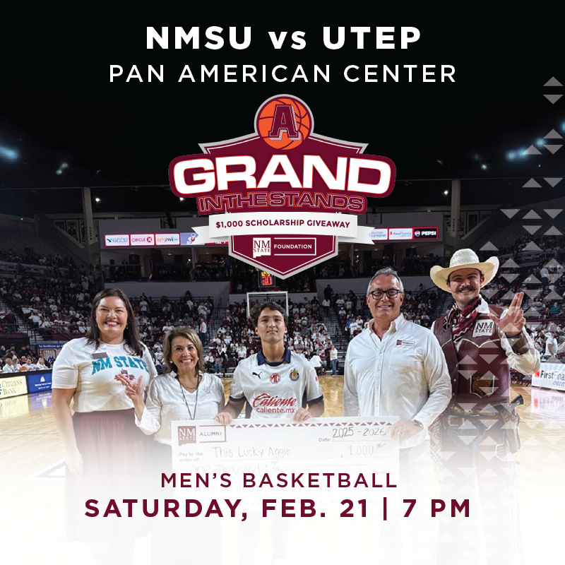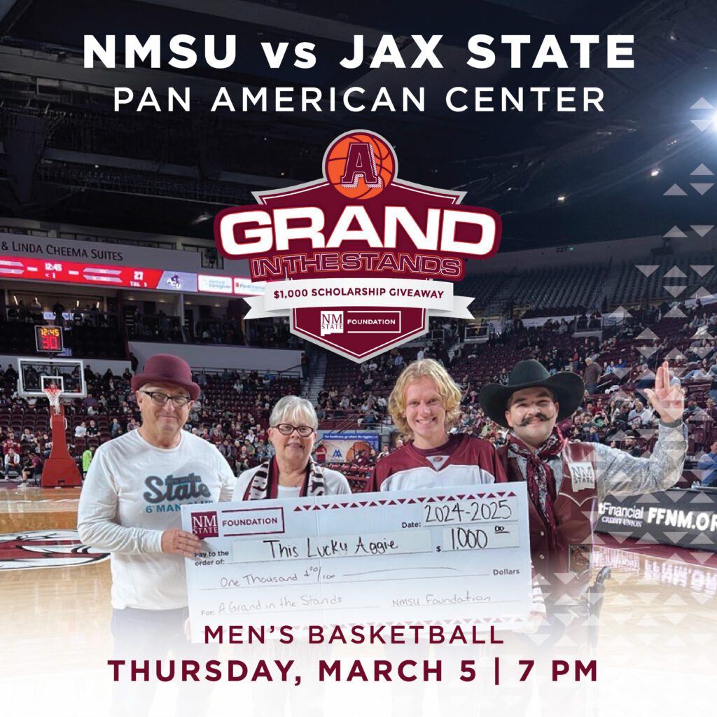 AGGIE STUDENTS! You could win $1,000 in the NMSU FOUNDATION’s Grand in the Stands Scholarship Giveaway at the upcoming NMSU vs. UNM basketball games! WHERE DO I GO? On November 15 at 7 p.m. and November 16 at 2 p.m., head to the Pan American Center as both the NM State Men’s Basketball and NM […]