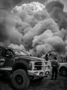 Just one year later, Garrett was working for the U.S. Forest Service Carson Hotshots: “It was fantastic. I walked into a group of men and women who were like me — hard workers who cuss and spit and love this special kind of suffering and what it brings.” In 2011, Garrett was deployed to the catastrophic Bastrop, TX, wildfire, which destroyed 1,645 homes, burned 34,000 acres, and killed two people. While breathing some of the worst air imaginable, Garrett and two other firefighters saved a dozen homes: “We don’t always get those moments. I was proud of making smart decisions that didn’t put us in compromised positions. We got that job done for those people, and I’m proud of that.”