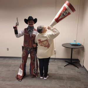 Eager to be fully immersed in campus life, Kay tried out for the cheerleading squad and earned one of just four coveted spots during the inaugural year of the Pan American Center. “My college years were incredibly formative,” Kay said. “NMSU gave me the confidence to grow as a leader. I was shy at first, but I learned that I didn’t have to be. That transfer of skills stayed with me for life.”